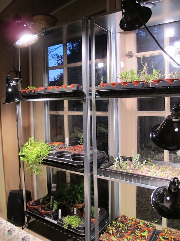 Last year I tried to grow my miniature plants in a small, old greenhouse attached to our house. The greenhouse was wet and cold and since I was starting in January, I did not have a lot of time to test it out. So this year I decided to grow the plants indoors, in a room that has large windows and radiator heat at the base of each window. I purchased inexpensive gro-lights on Amazon