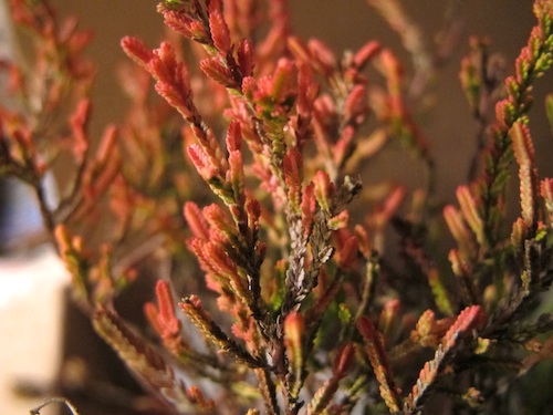 I love heathers but have had no luck trying to get cuttings to root, even though every propagation book I have says it is the easiest thing on earth. Not on my earth! So I bought a small heather but it doesn’t look very tropical to me. Still, it has beautiful color and texture so it may be useful.