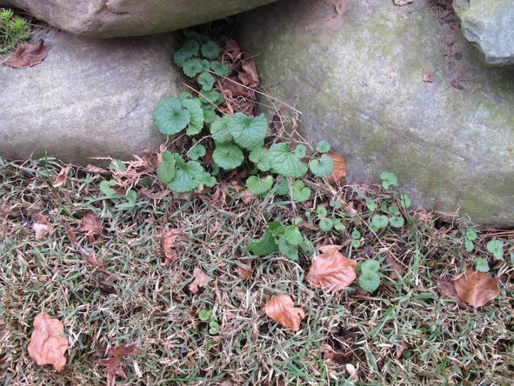 Next is the biggest mistake I have ever made in a garden (below). I planted one tiny plant of this Glechoma hederacea (creeping Charlie or ground ivy) on a slope that had bad soil. It left the slope and invaded a nearby lawn.