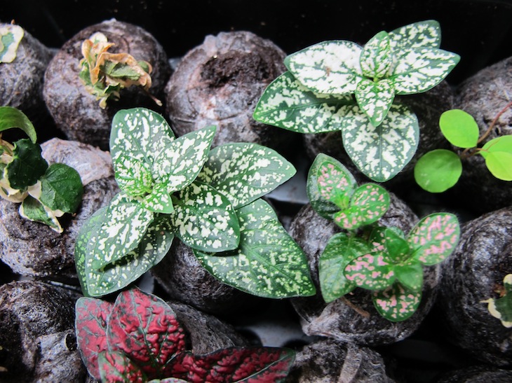 Polka-Dot Plant (HYPOESTES PHYLLOSTACHYA ‘PINK SPLASH SELECT’ and ‘WHITE SPLASH SELECT’) These Polka-Dot plants look very topical and the small leaves are ideal. I have them in three different colors.