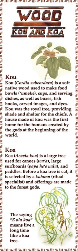 In the Museum of Hawaiian Plant Lore, I have created large panels to explain the displays. I actually made them quite large, the way I wish they were in most museums, so you can see them easily. Here are the panels in case you want to learn a bit about Hawaiian plants and plant lore or would like to see the panels more easily. You can click on any image to get a larger view and a slide show.