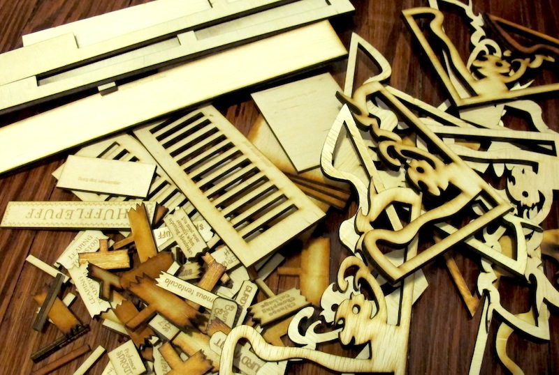 I spent many hours at NextFabStudio laser cutting hundreds of pieces for my miniature Hogwarts greenhouse. I am quite sure 80% of what I cut was not necessary but it was fun trying different things.