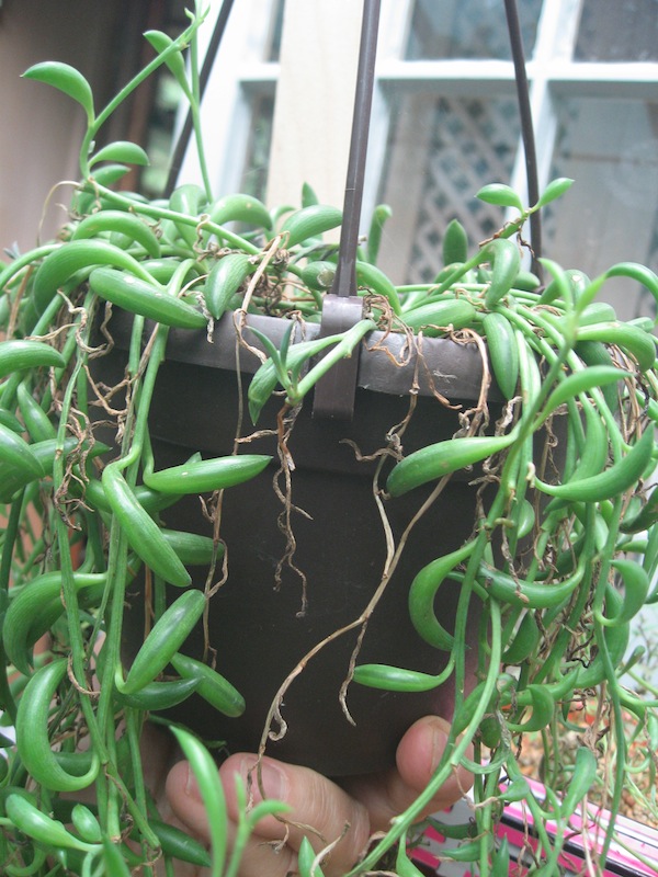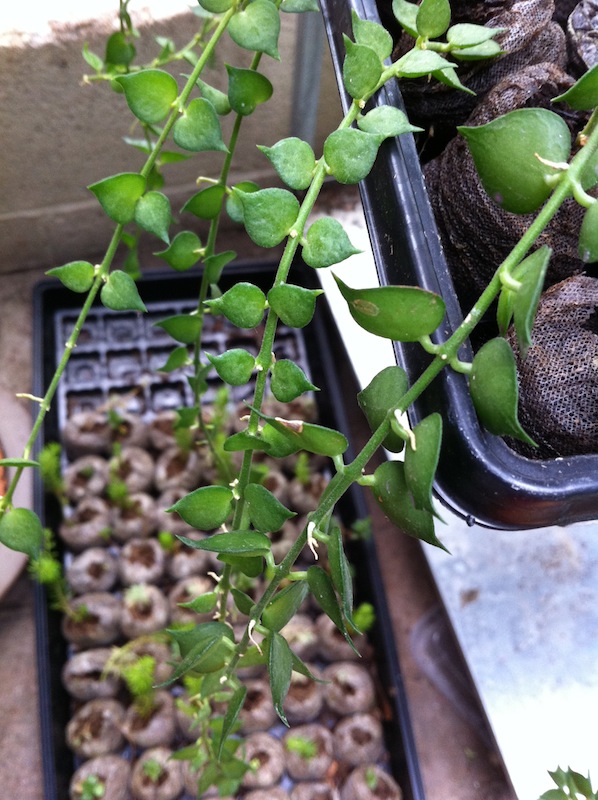 For my Venomous Tentacula I will use Senecio radican glauca, also known as “String of Bananas.” Doesn’t sound threatening but I have been growing long strands of them and will hang them from the ceiling of the greenhouse. They will live inside this cage which obviously they have broken out of!