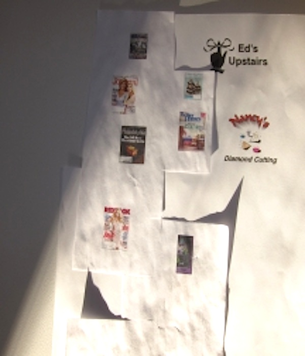 1. Collect books and magazines related to the theme2. Gather note pads of various sizes.3. Apply fire retardant to copy paper and note pads cut to size. Let dry.4. Scan covers, resize, and arrange on Print Shop page. Print and cut out leaving excess to wrap around back.5. Glue cover photo to front of note pad and wrap extra over the note pad binding and onto the back of the pad.6. Trim book to size using a rotary cutter, cutting mat, and plastic ruler.