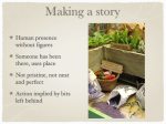 In my talk at the September meeting, I presented my ideas about storytelling and narrative for miniature settings. I feel that the best settings are ones that tell a simple story, evoke a feeling, help recall a moment, or encourage the imagination. I am always less impressed by displays that are just trying to describe or simply show a scene. Here are some of the ideas I presented. Clicking on any images begins a slide show.