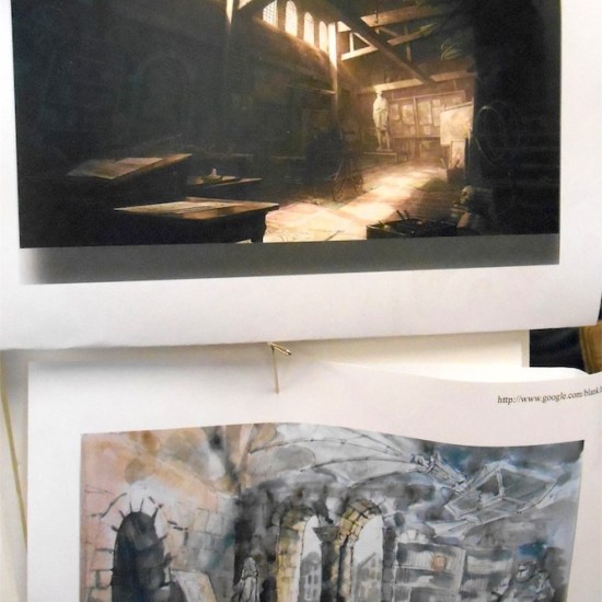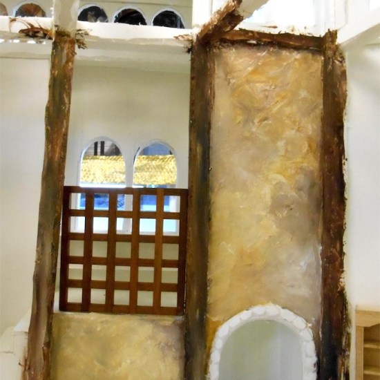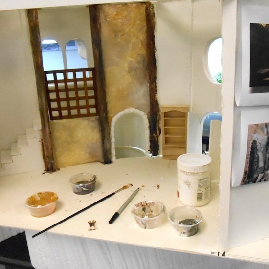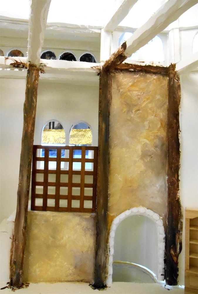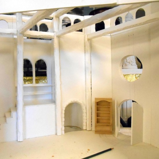 Bev Palaia, a veteran exhibitor and award winner in Miniature Settings, will be recreating Leonardo da Vinci’s workshop for the 2014 Flower Show. Here is her work in progress.