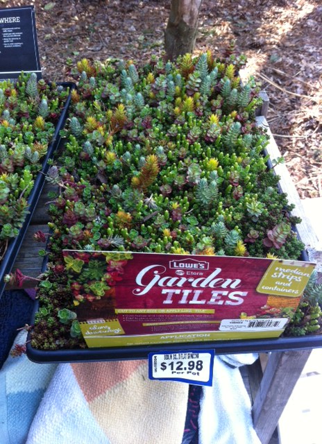 The garden centers in the local hardware stores are starting to be stocked and I found this treasure in my local Lowes. It is huge tray of miniature succulents. Would make a great living wall but also could be taken apart and the hundreds of baby succulents grown as miniature plants. Great price, too: $12.98.