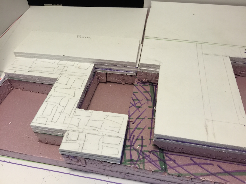Next I built up the different levels with pink insulation board, available at all hardware or home renovation stores.