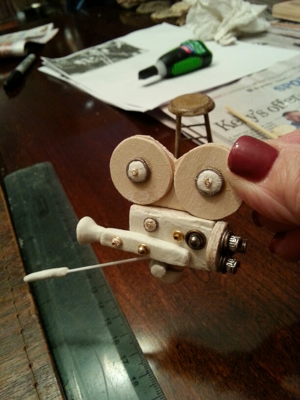 Kathy and Sheri and Ron are working on some props for their Lady and the Tramp exhibit and this movie camera is very impressive: