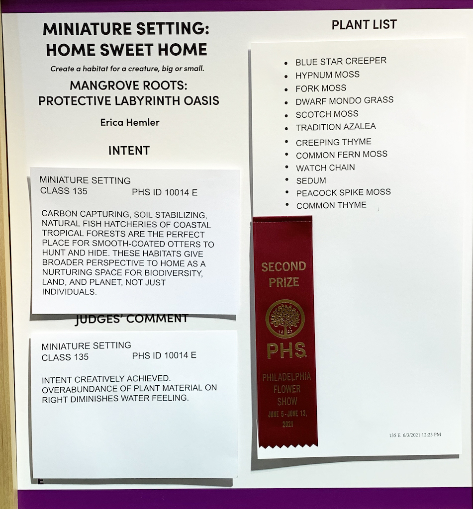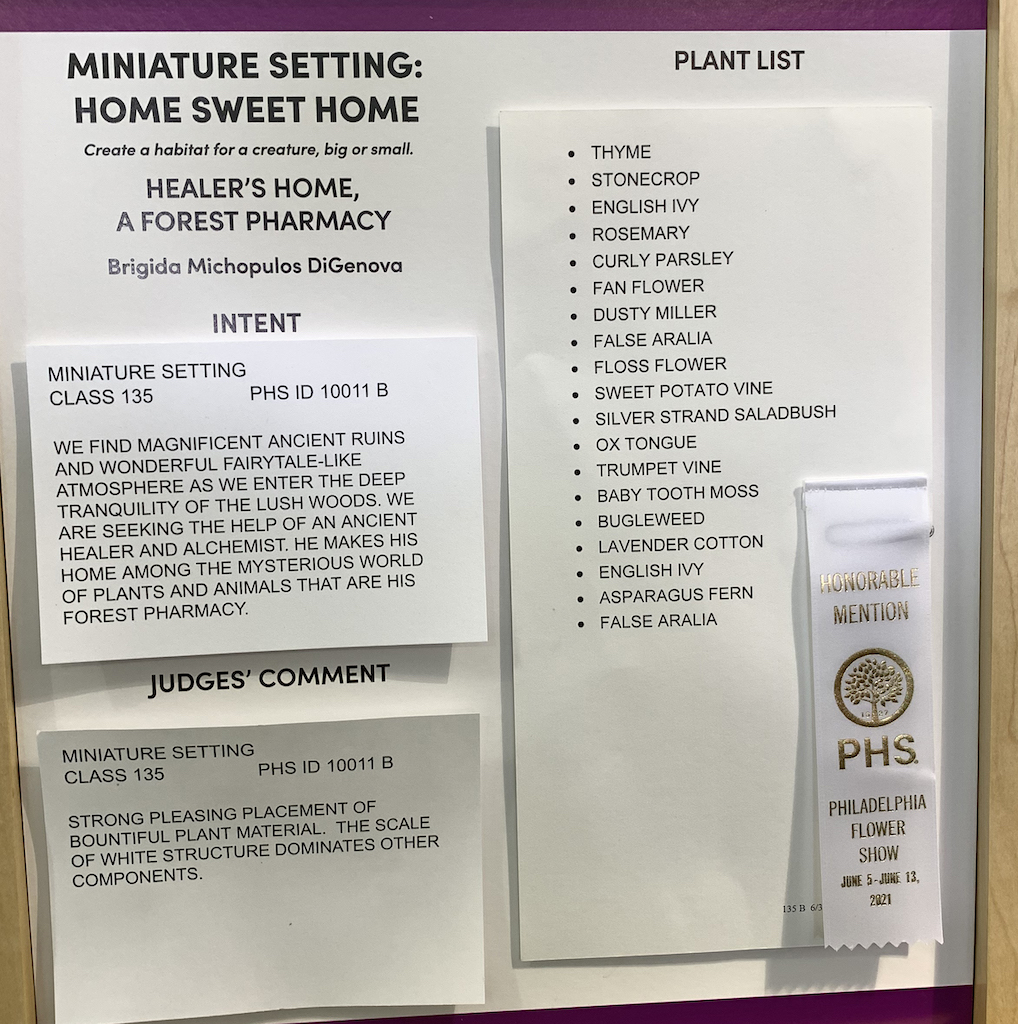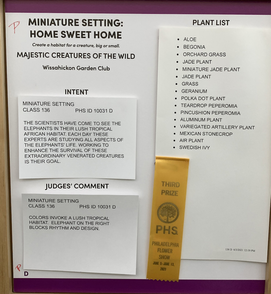A documentation of the entries in the Miniature Settings. Popular with the crowds, as usual, but very difficult to photograph because of the reflections. Quality of miniature presentations were mixed. I find it unfortunate that common names of plants are now acceptable instead of the Latin scientific names.